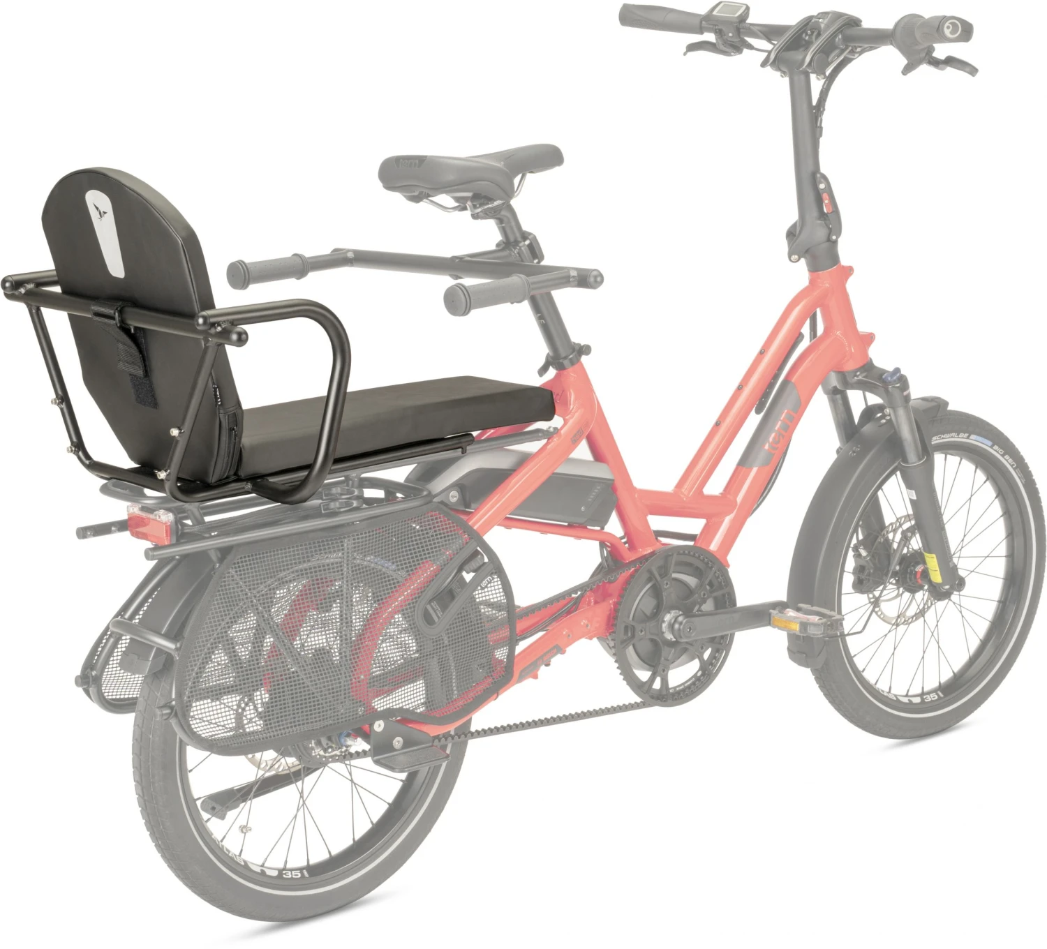 Le siège Tern Captain’s Chair permet aux enfants et aux adultes de monter à l’arrière de votre vélo électrique GSD ou HSD.